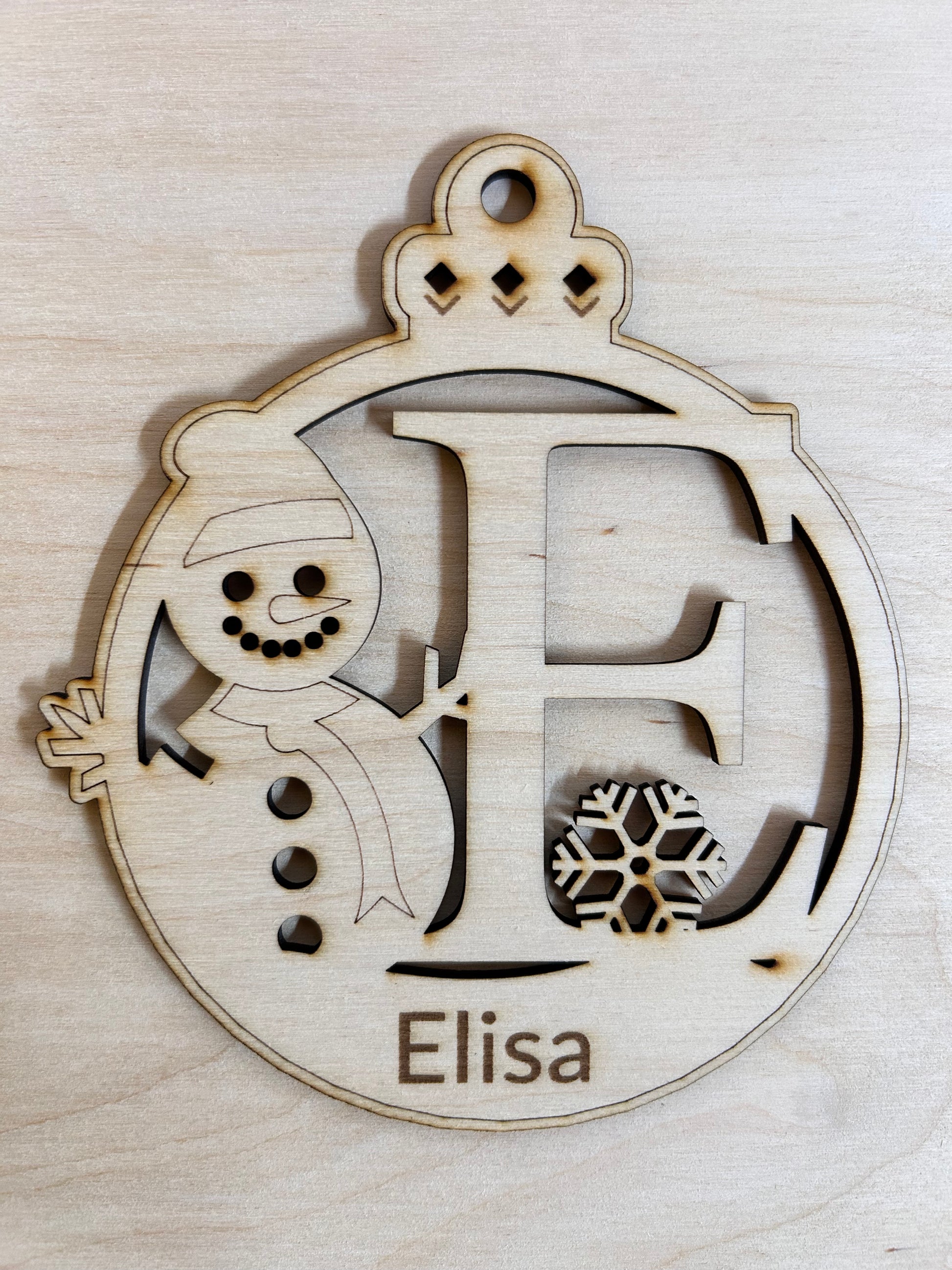 Addobbo realizzato in legno intagliato personalizzato con lettera e nome