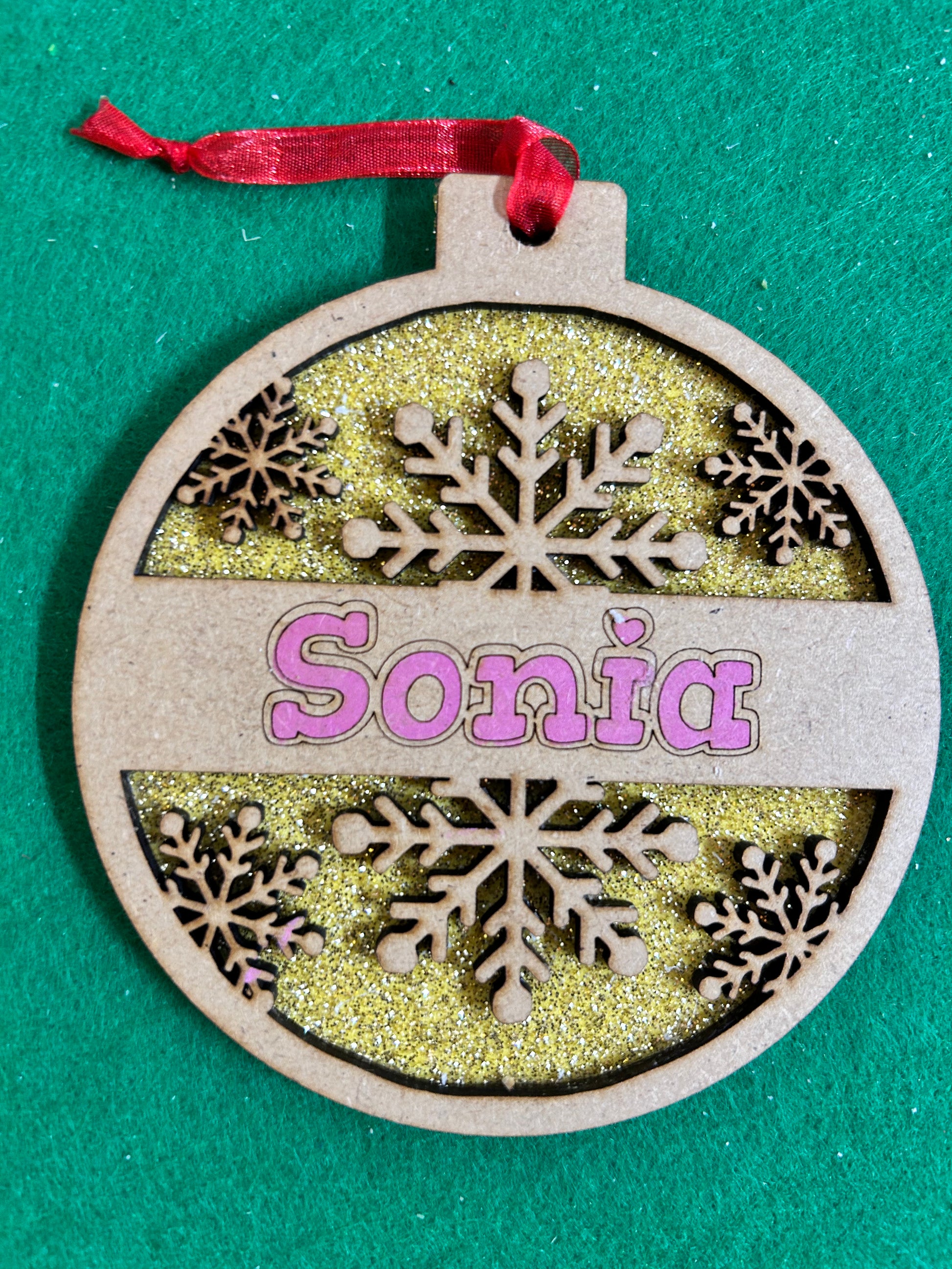 Pallina di Natale personalizzata con nome e gomma eva disponibile in diversi colori..