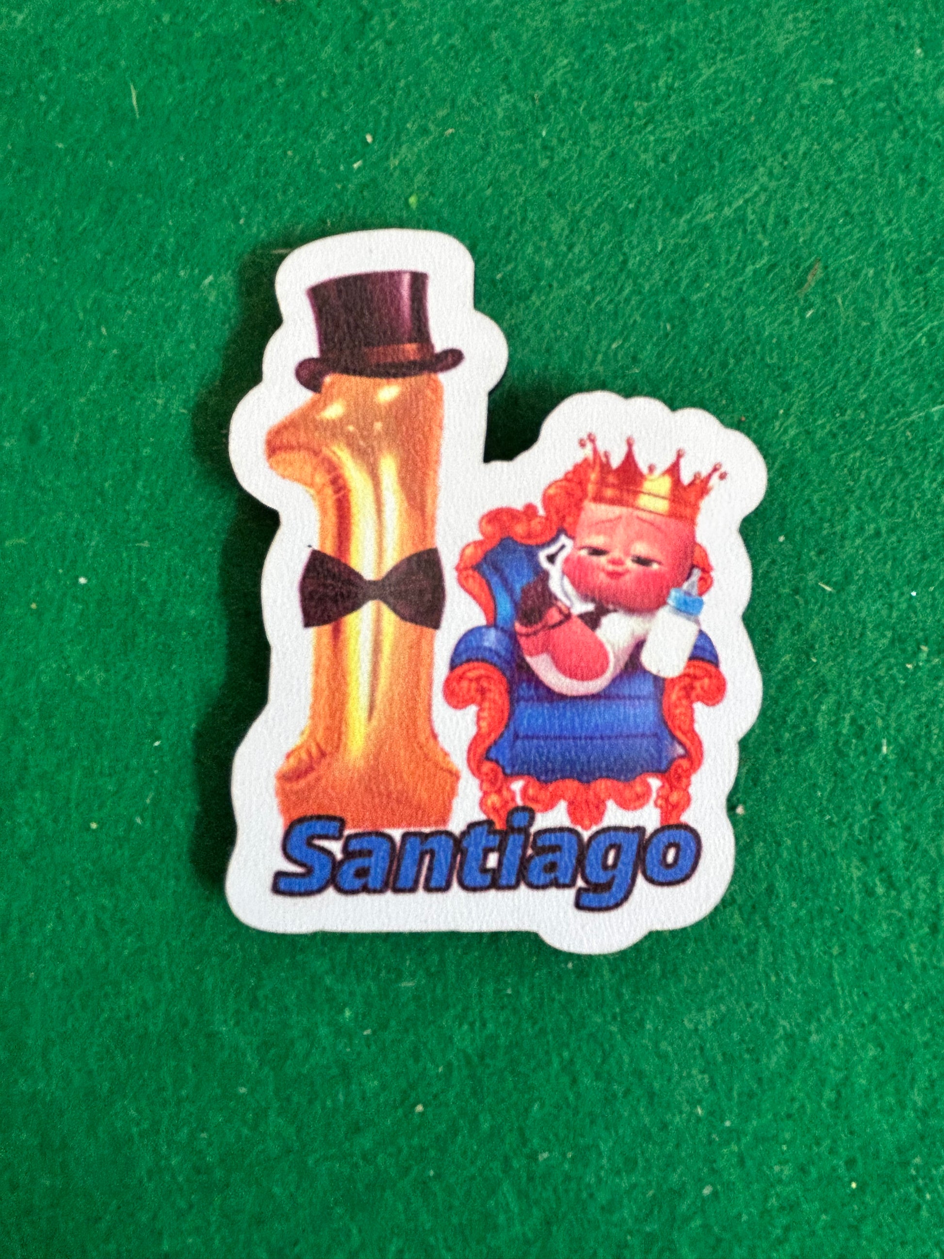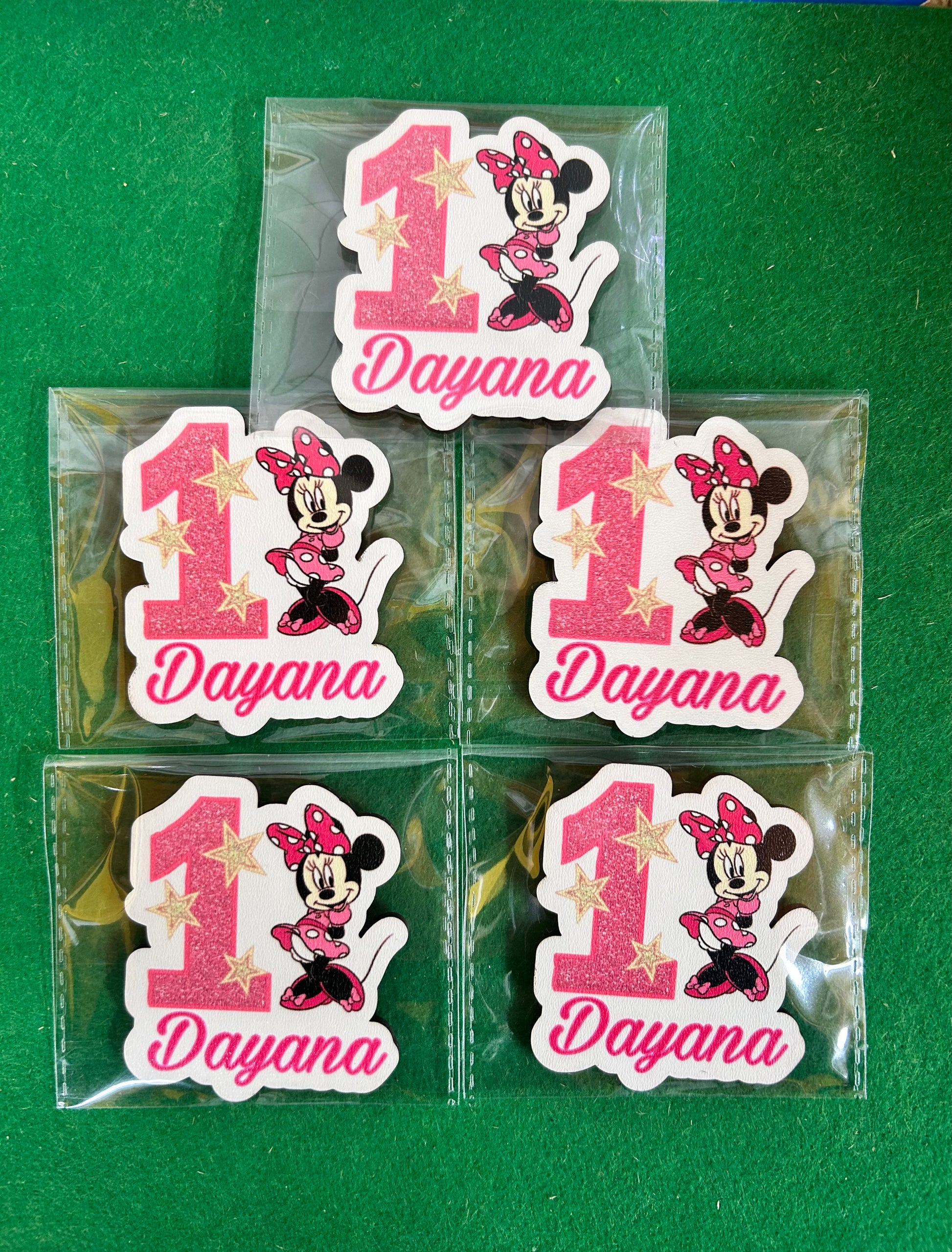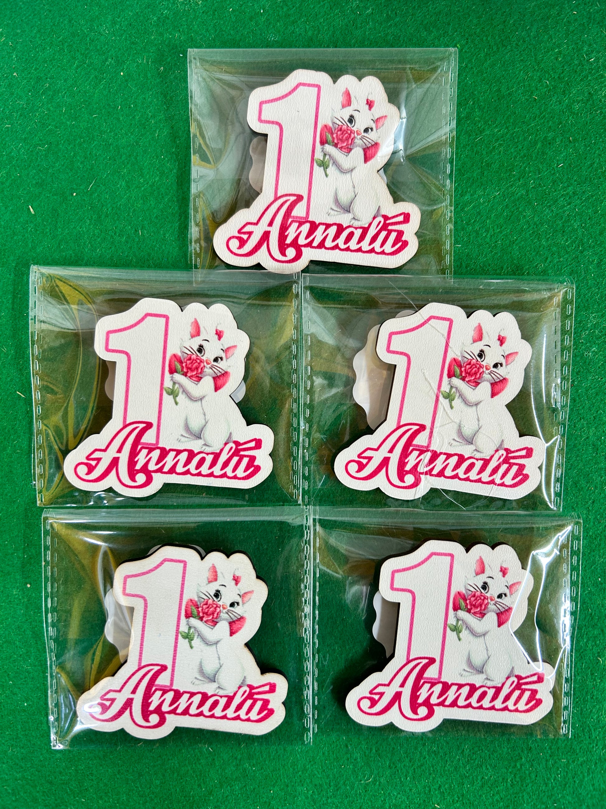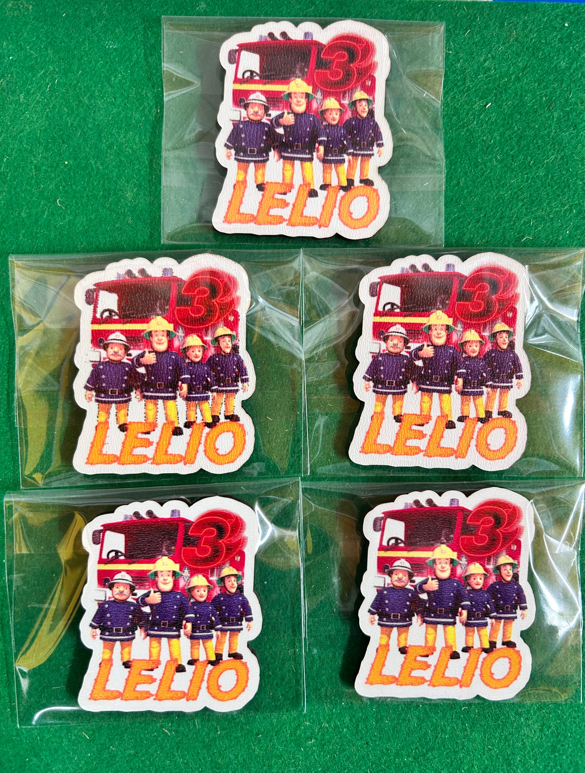 Calamita realizzata in legno e personalizzata con nome e numero. Confezionate una ad una in bustina trasparente.