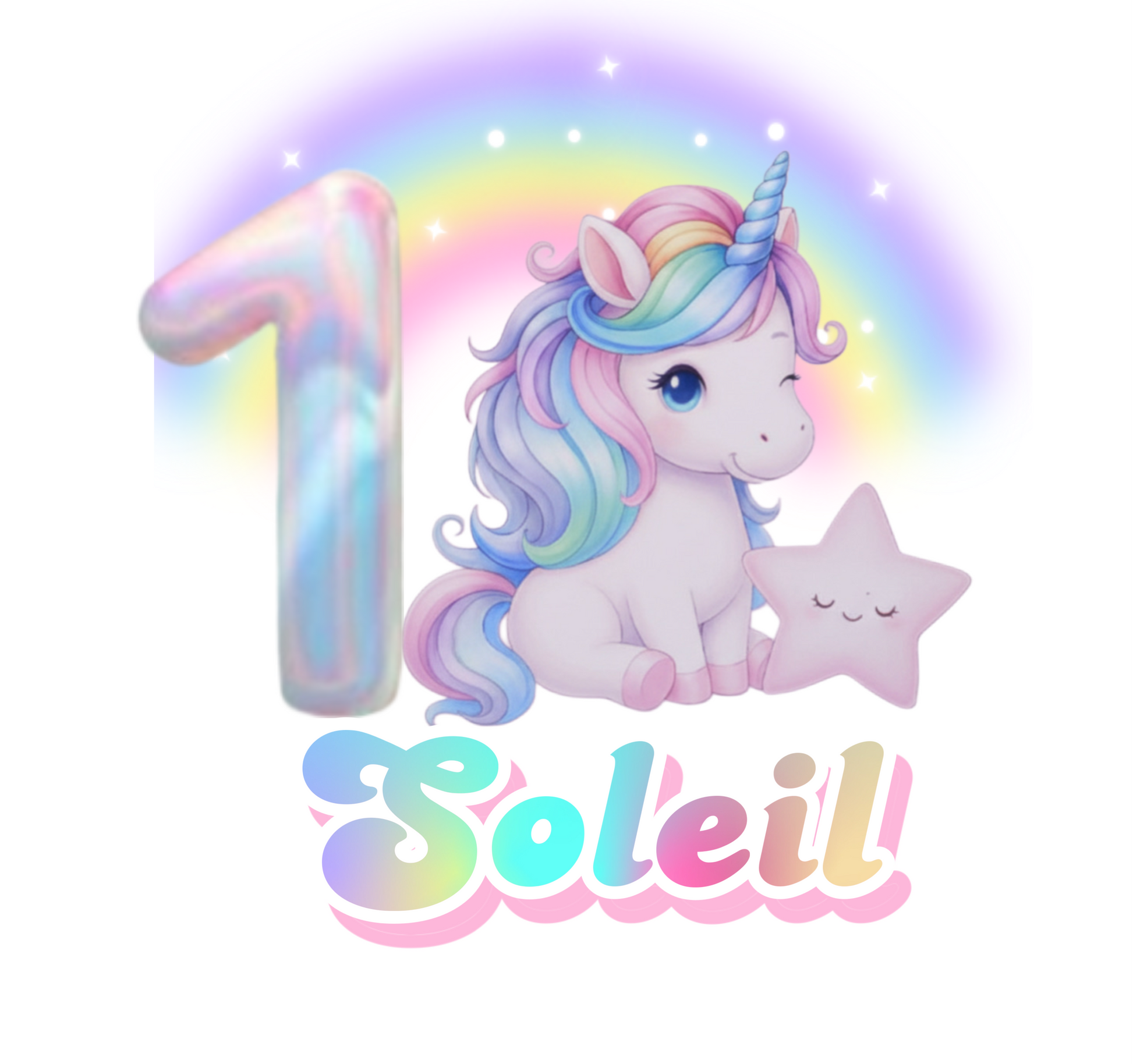 Calamite in legno personalizzate con personaggio Unicorno e scritta.