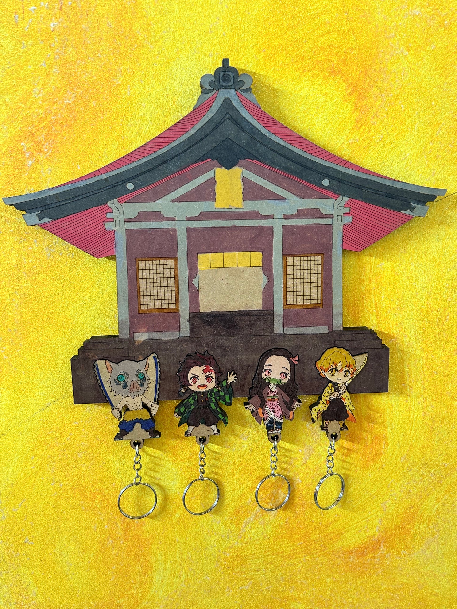 Portachiavi Artigianale da parete a tema Demon Slayer, realizzato in legno MDF e dipinto interamente a mano.