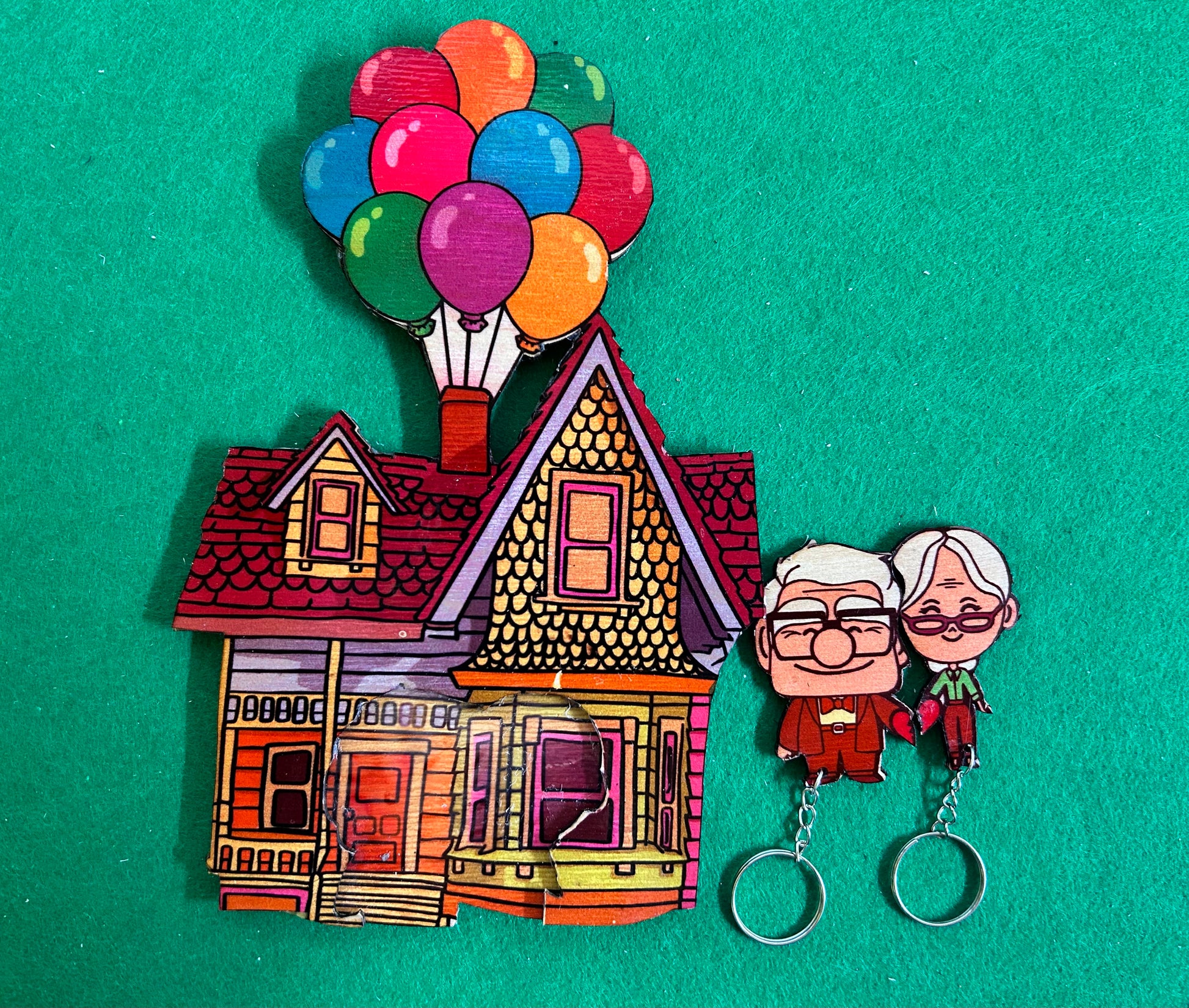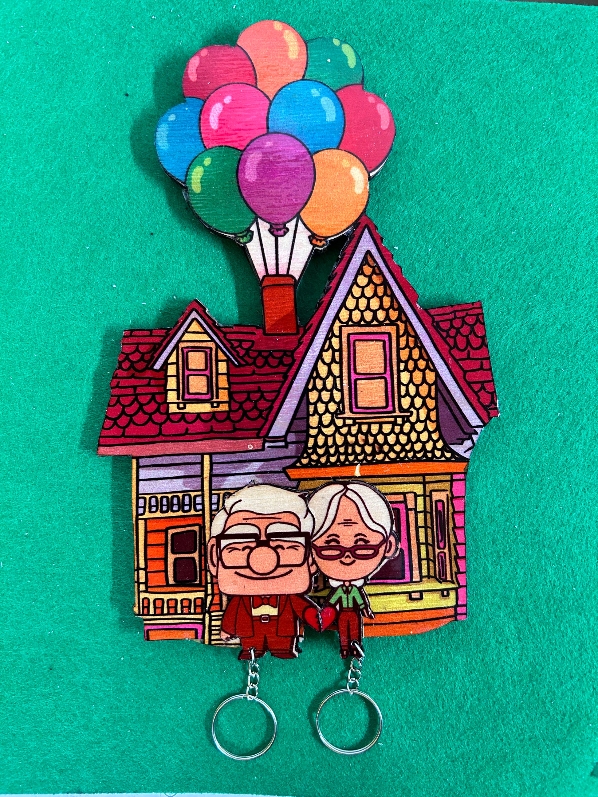 Portachiavi personalizzato da parete a tema Disney "UP", realizzato artigianalmente e con disegno a sublimazione. Include i 2 portachiavi staccabili e disegnati da entrambi i lati con i personaggi principali..